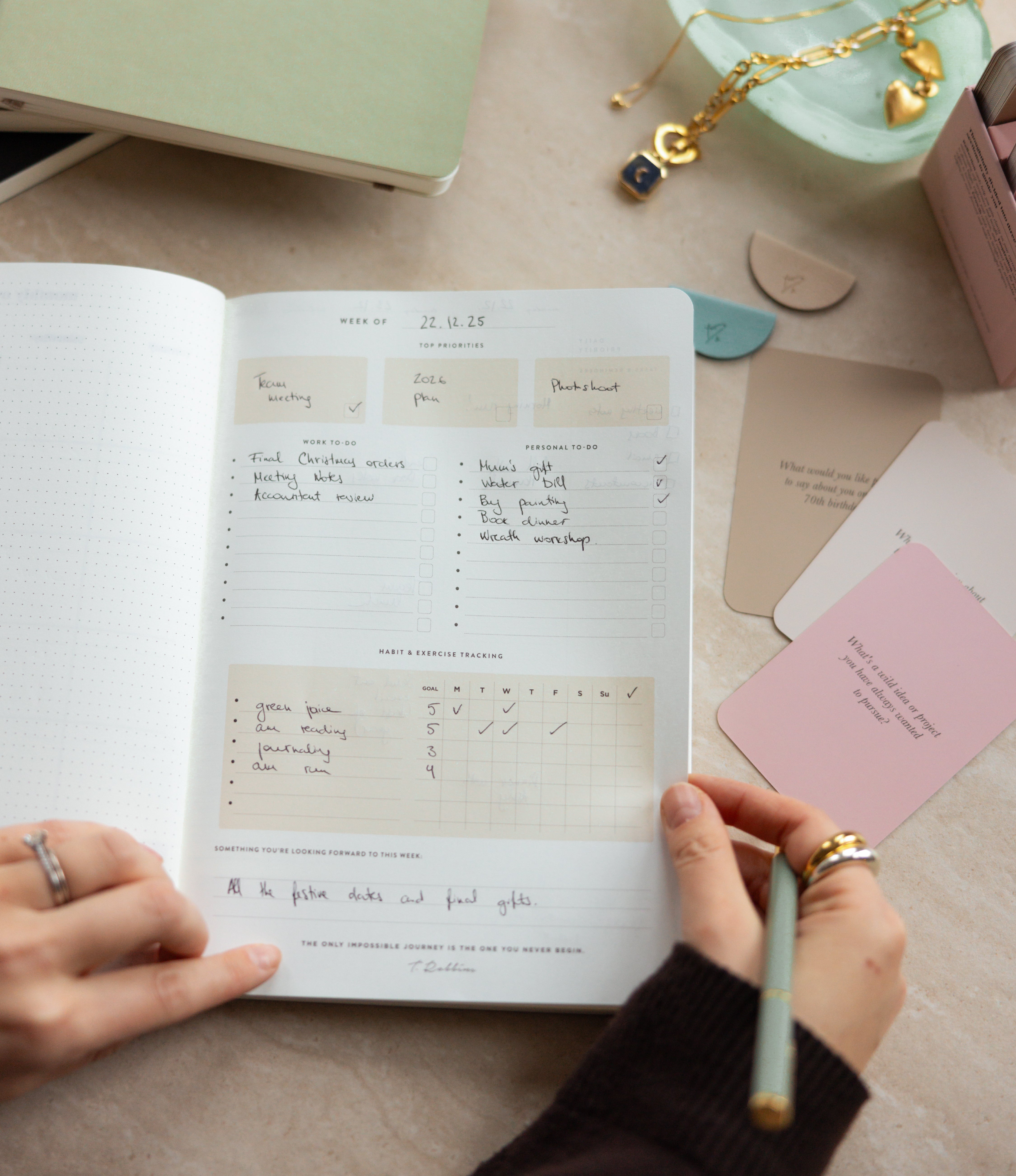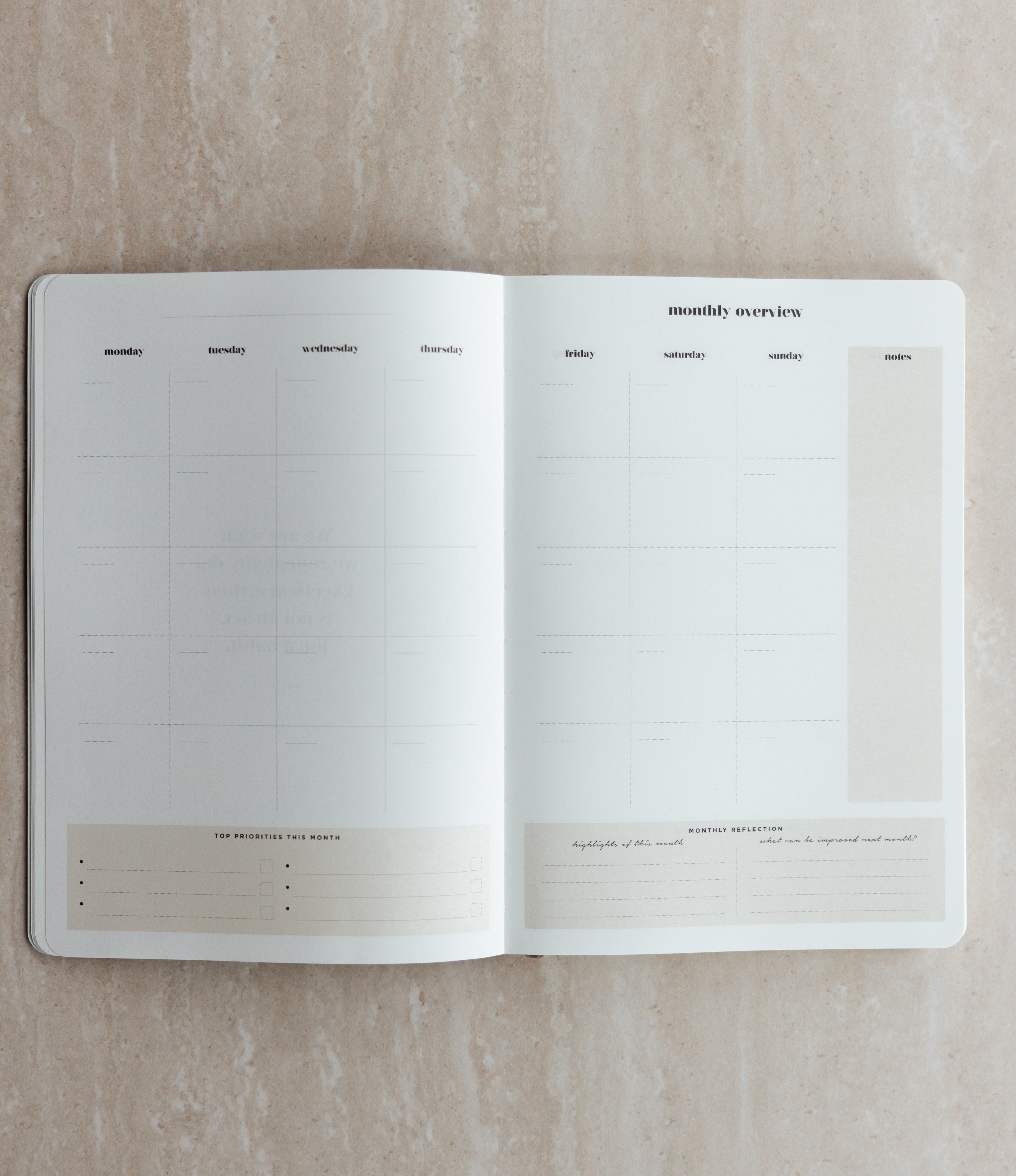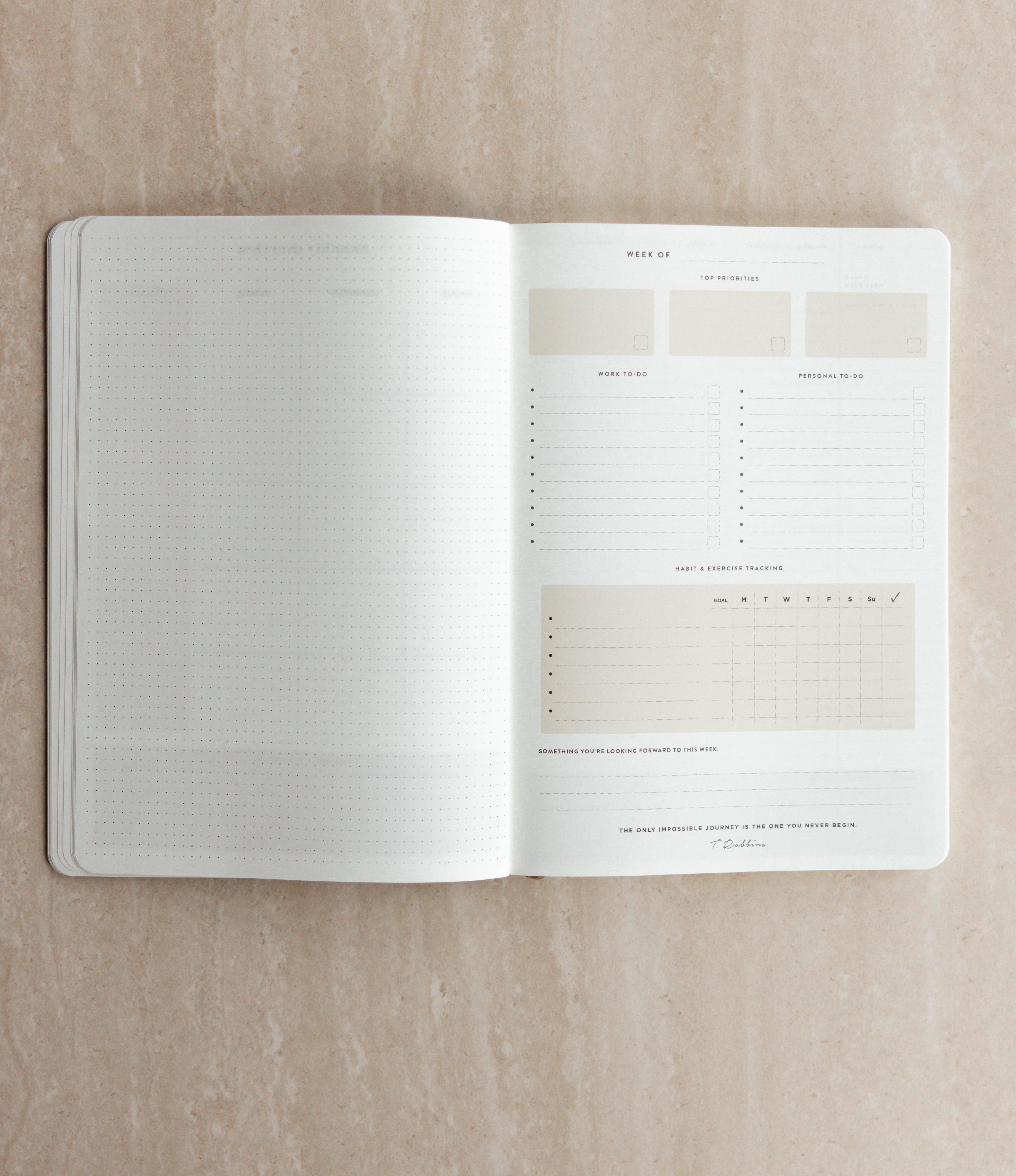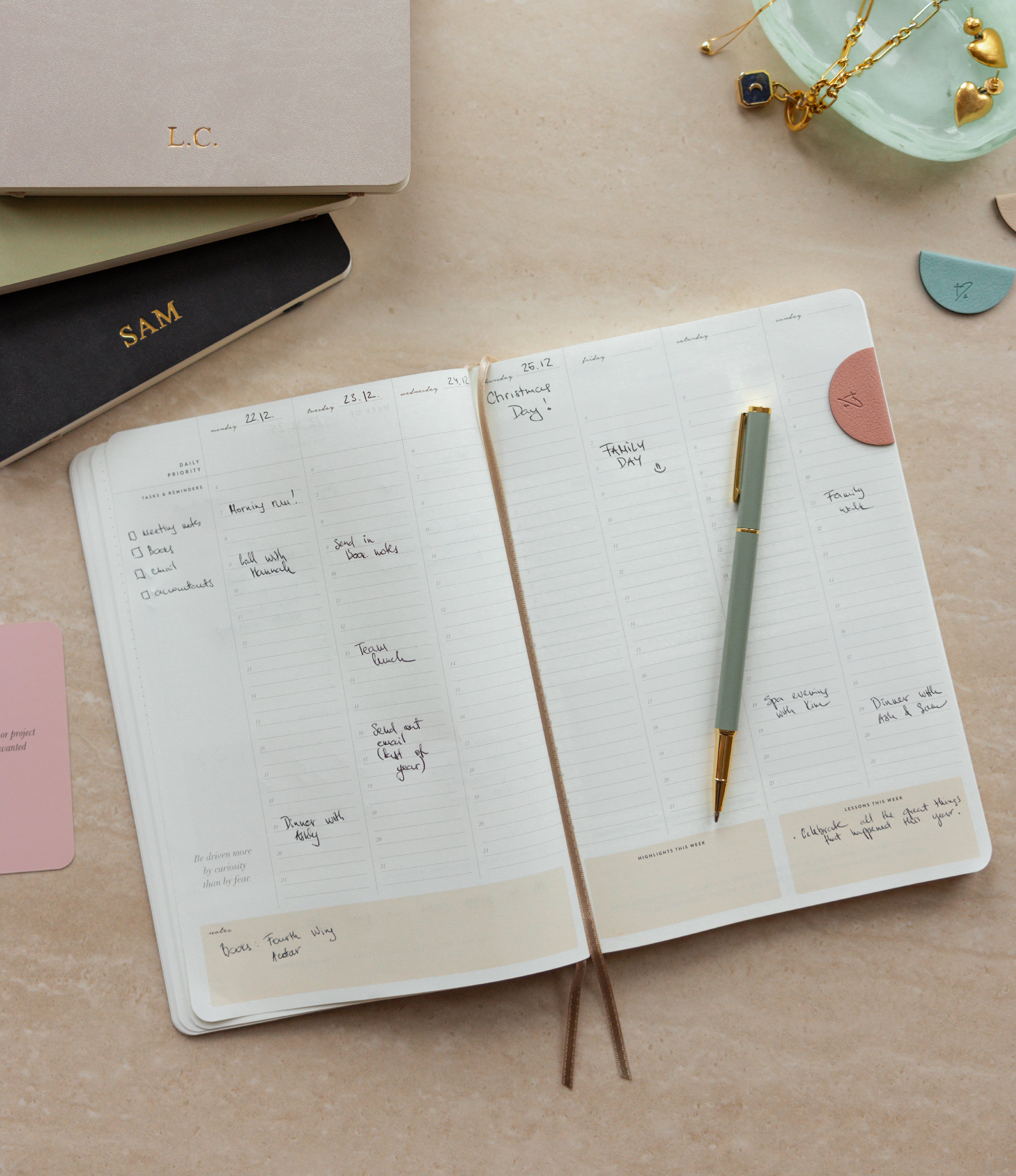 Your everyday agenda for 6 months, or 26 weeks. This vertical-style layout features a daily 6am–9pm schedule, making it easy to plan appointments, prioritise to-dos, and create a clear, time-blocked overview of your day — all within a weekly overview spread.