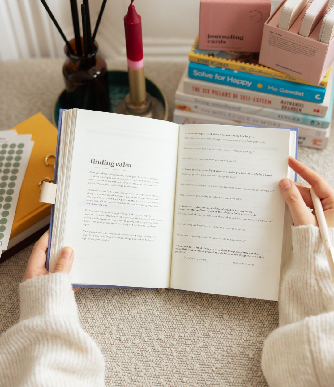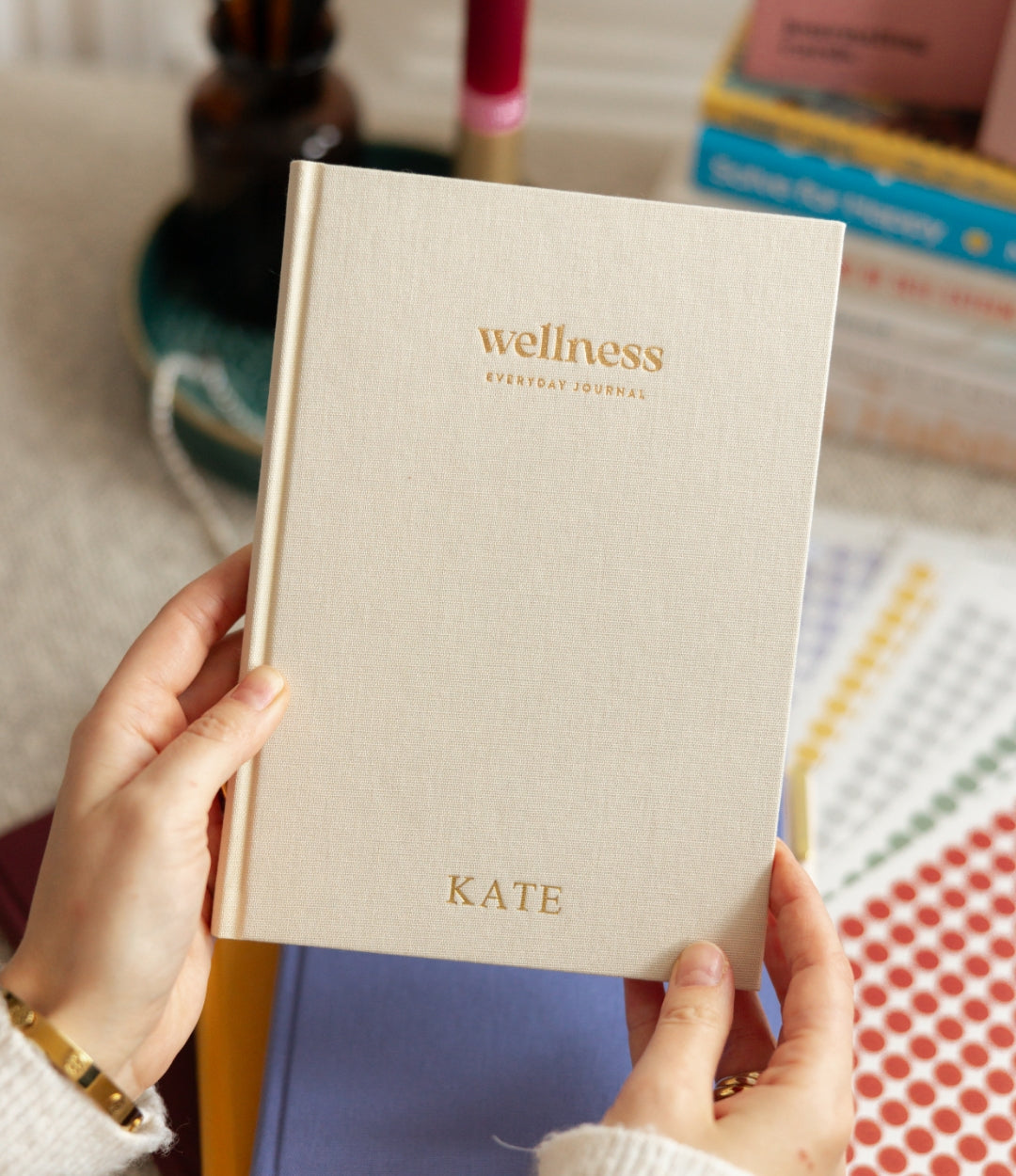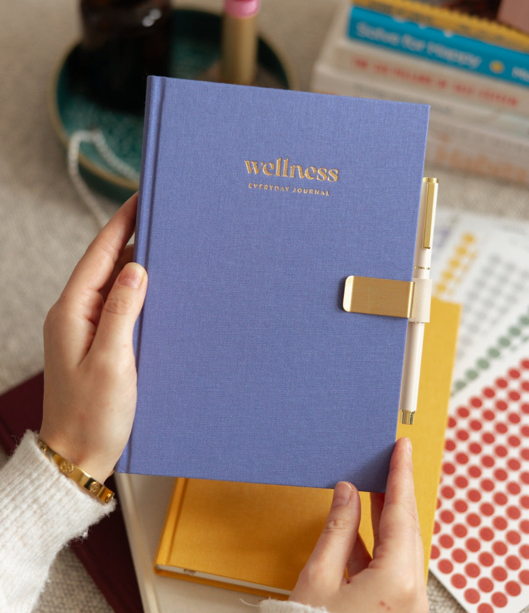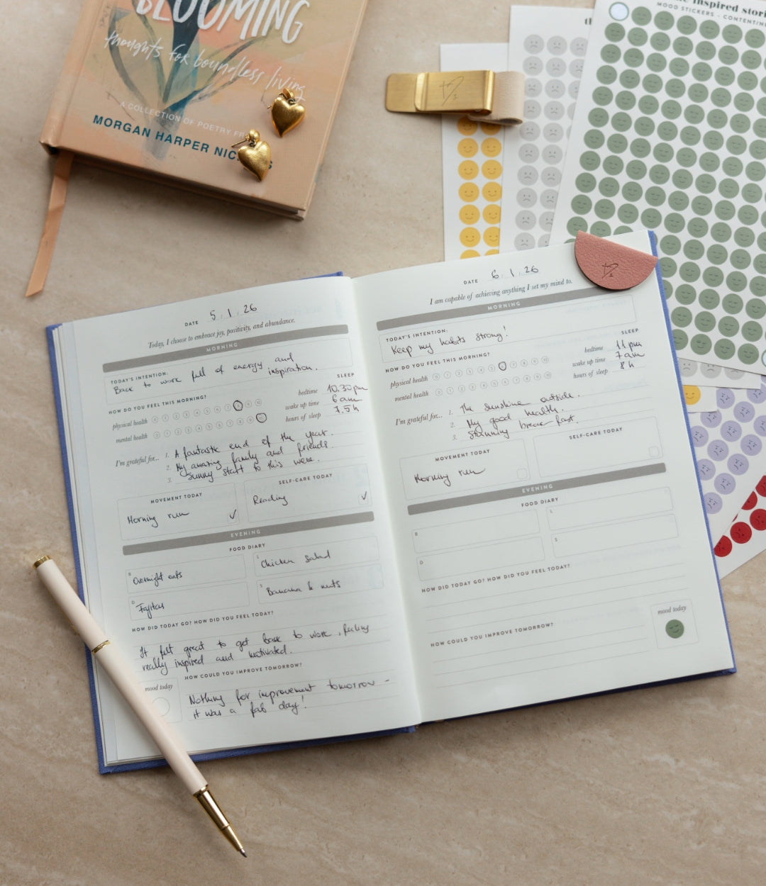 Inside, you’ll find wellness tools like a wellness wheel, habit trackers, mood tracking, and thoughtful mini chapters focused on mindset, stress management, emotions, connection, and self-care.